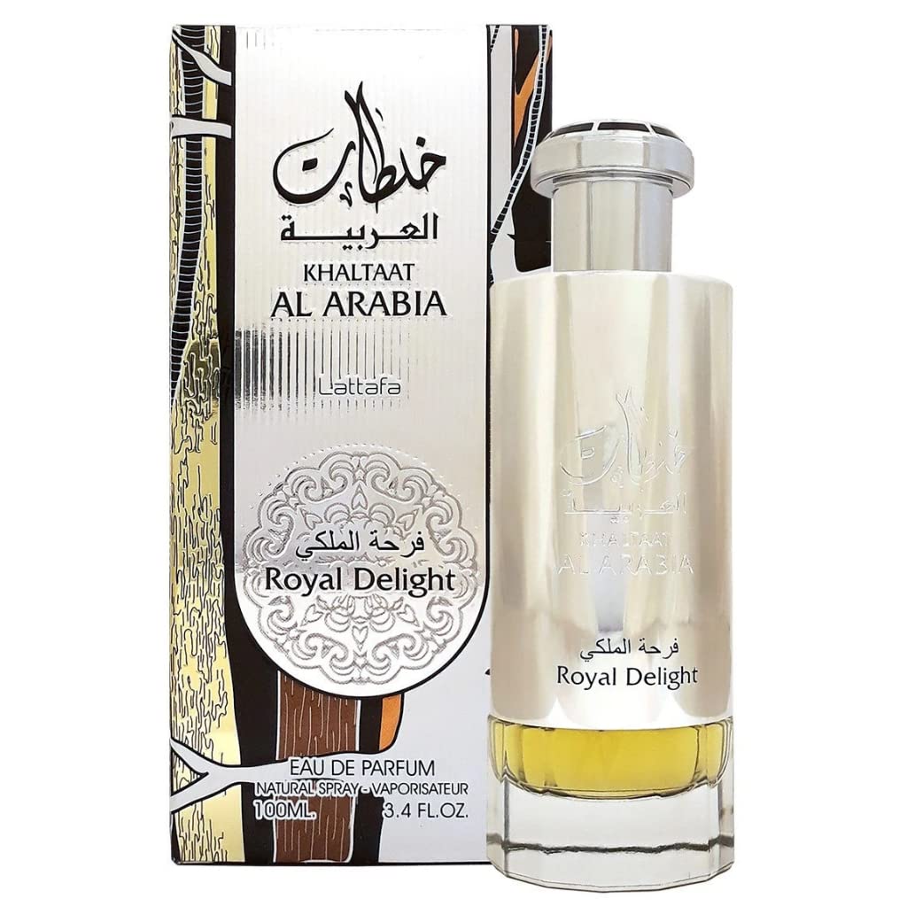 - Acerca de KHALTAAT AL ARABIA Royal Delight es la fragancia oriental que combina especias preciosas, la calidez de las notas afrutadas con la suavidad del ámbar, la fragancia tiene la mejor respuesta a los otros clones y el perfume es para mujeres.